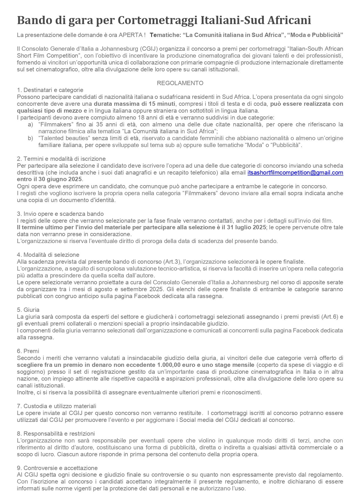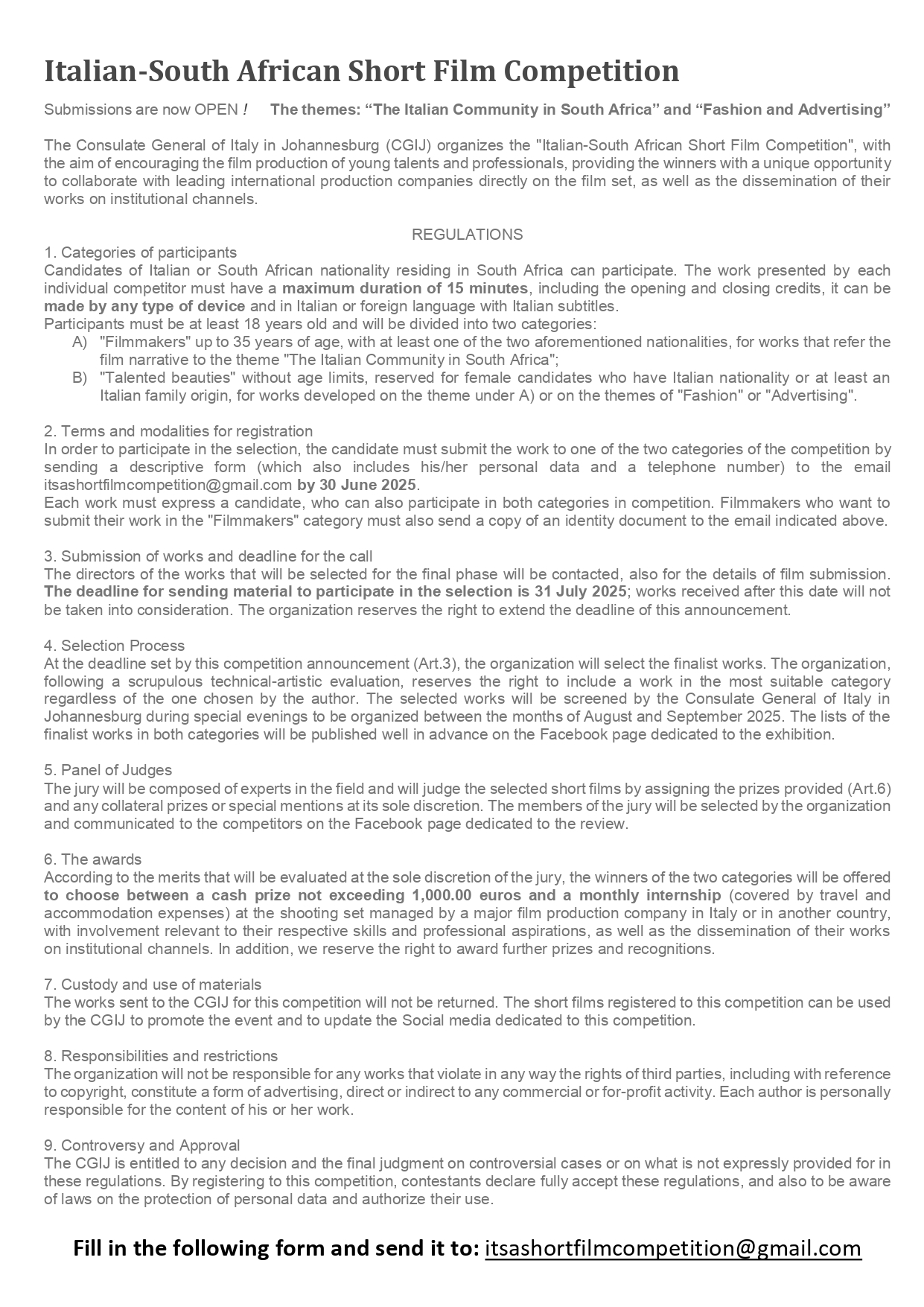 - FILMMAKERS on the theme “The Italian Community in South Africa.”