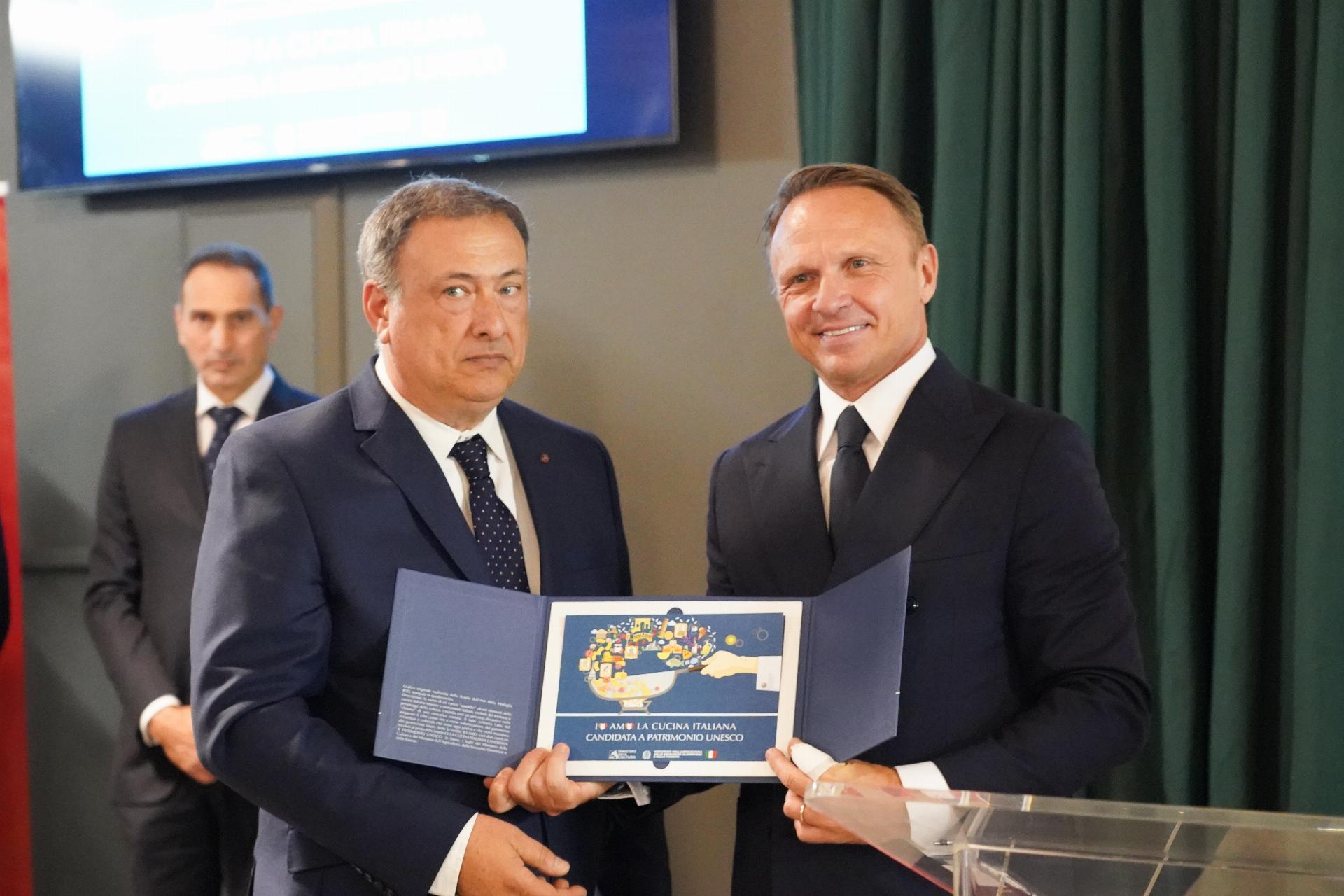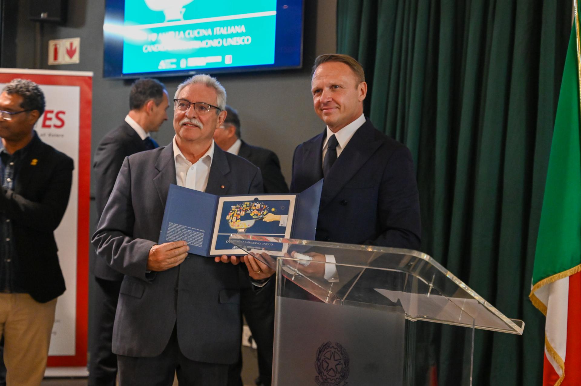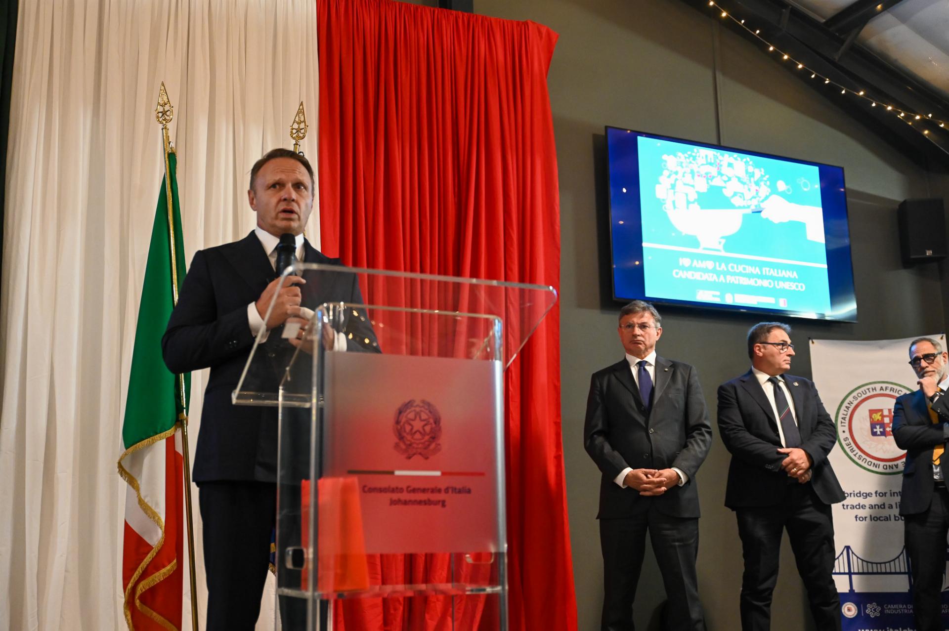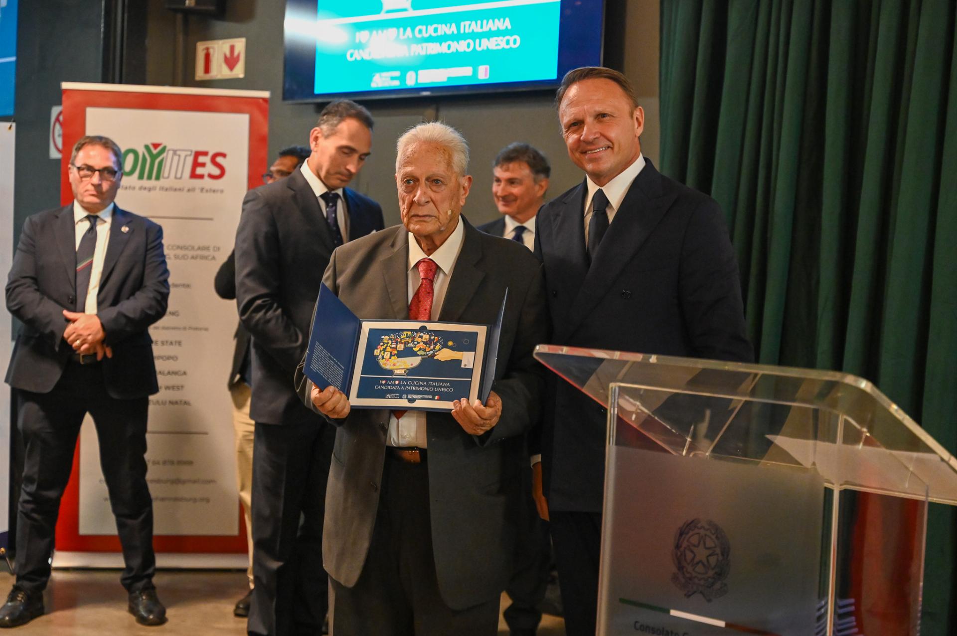 Il 16 settembre il Ministro Francesco Lollobrigida ha incontrato al Club Italiano di Johannesburg Associazioni, imprese, istituzioni e numerosi esponenti della comunità italiana, soffermandosi sugli aspetti nutrizionali e di salute alla base della candidatura della Cucina italiana all’UNESCO quale Patrimonio Culturale Immateriale dell’Umanità. Alla presenza dell’Ambasciatore S.E. Alberto Vecchi e del Console Generale Spadavecchia, sono state premiate le associazioni e gli operatori italiani del sistema alimentare, oltre ai giovani sudafricani della Johannesburg Culinary and Pastry School partecipanti alla “Italian Cooking and Food Safety Masterclass” nell’ambito della decima edizione della SETTIMANA DELLA CUCINA ITALIANA NEL MONDO.